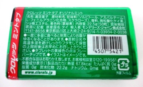 원본상품명: モンデリズジャパン クロレッツ ミントタブ オリジナルミント 22.5g(50粒)×6個