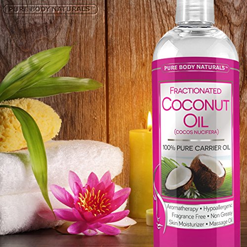 Fractionated Coconut Oil is a wholesome, natural alternative to your top shelf moisturizer, hair serum, and acne spot treatment. It is an all-natural carrier oil that readily absorbs into the skin, making it an ideal oil for topical delivery. Its feather-light emollient effect provides a soothing barrier without clogging pores and is excellent for dry or troubled skin. It leaves skin feeling silky smooth and non-greasy, unlike other vegetable carrier oils. Fractionated Coconut Oil is completely soluble with all essential oils and is colorless, odorless, and will not stain. - Apply as a hair treatment to strengthen hair, condition the scalp, and help to regrow hair - Apply topically to hydrate skin without interfering with your perfume or essential oil blends - Mix with calming oils and massage into neck and shoulders for deeper relaxation - Dilute stronger oils with coconut oil before applying topically to lessen sensitivityFeature