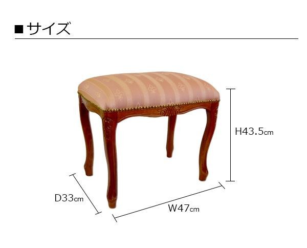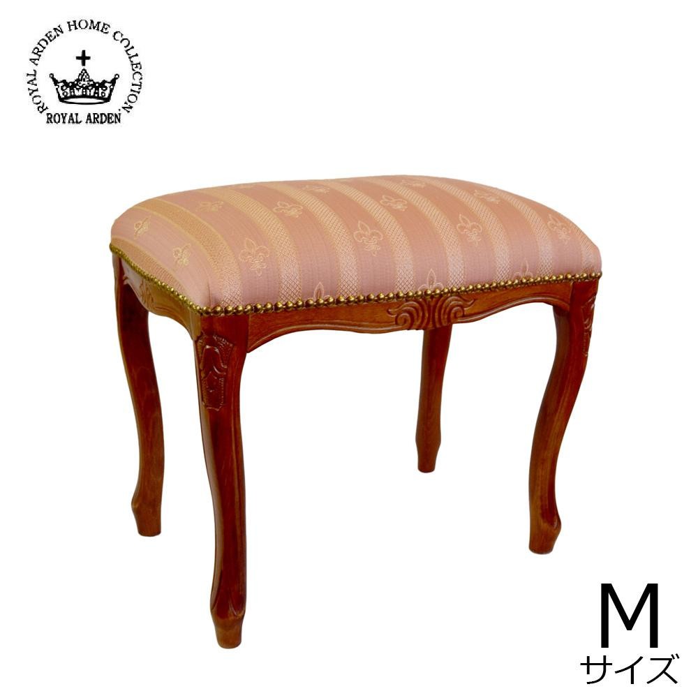 アンティーク調のおしゃれなスツールです。エレガントなお部屋にぴったり。 製造国:イタリア 素材・材質:脚:天然木ビーチ材ファブリック:ポリエステル100% ※サプライヤー直送品 ※2019年5月上旬入荷分予約受付中【商品名】ロイヤルアーデン イタリアスツール Mサイズ ピンクストライプ 茶脚 51354