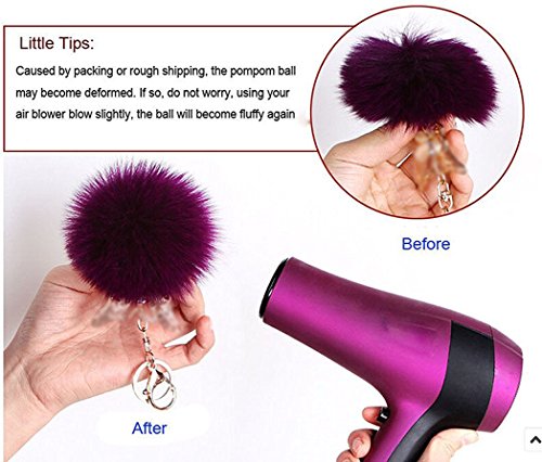 -. Feature : Material:Rabbit Fur, Fur Ball diameter size:8cm / Special design which makes this Keychain a perfect gift. / You can wear it on your hanbag,purpuse,Backpack,car key / Lightweight, portable and fashionable,As a perfect gift for yourself or your friends. / Note: The fur ball may be squeezed in transit, you can shake it or use hair dryer puff the fur after you receiving , the fur will be open again