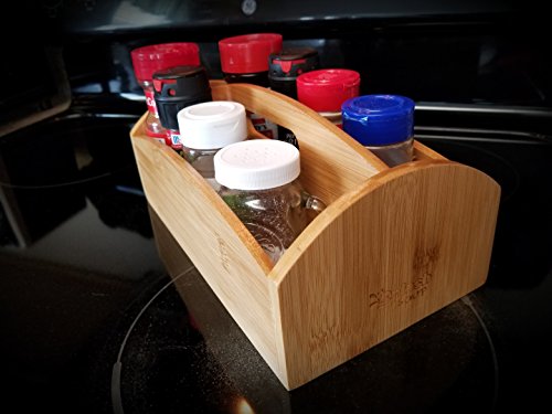 Spice Rack All Natural Bamboo | Outdoor Grill Caddy Easy-To-Carry | Kitchen Accessory Organizer | Cooking Supply Space Saver | Counter Top Helper | Herb & Ingredient Holder by SplashSoup