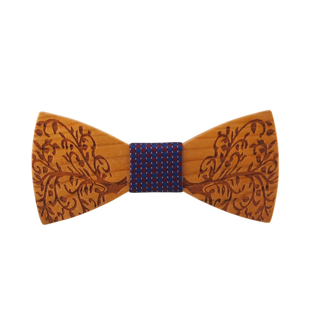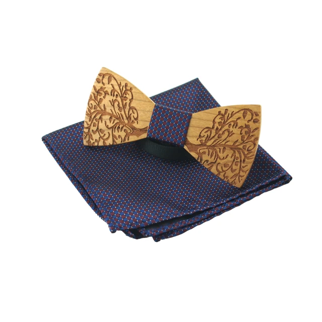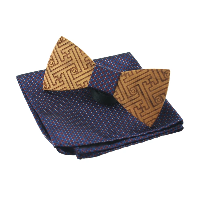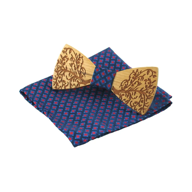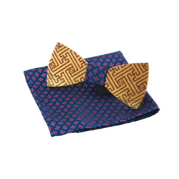| [해외]Mantieqingway 클래식 나무 나비 넥타이 목에 두르는 창조적 수제 나무 나비 넥타이 세트 격자 무늬 손수건 나무 남성 선물 |
