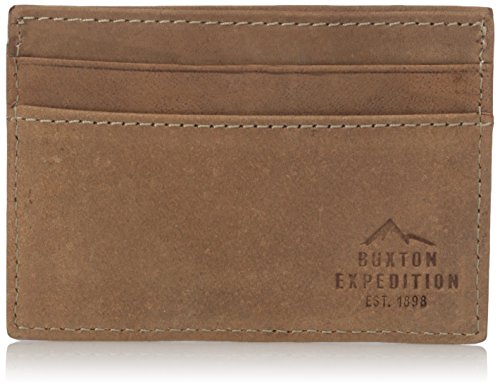 Studio : Buxton Men's Furnishings Publisher : Buxton Men's Furnishings Binding : Apparel Product Description Brushed and tumbled buffalo hide with signature Buxton expedition logo emboss expedition ii rfid front pocket get-away features interior rfid blocking material, rfid blocking lined credit card pockets, i.D. Window, multiple credit card slots and utility pockets. 0