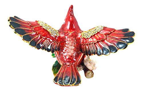 - The red cardinal is sitting on a magnolia branch with outstretched wings to show the detail of gold trim and crystals.