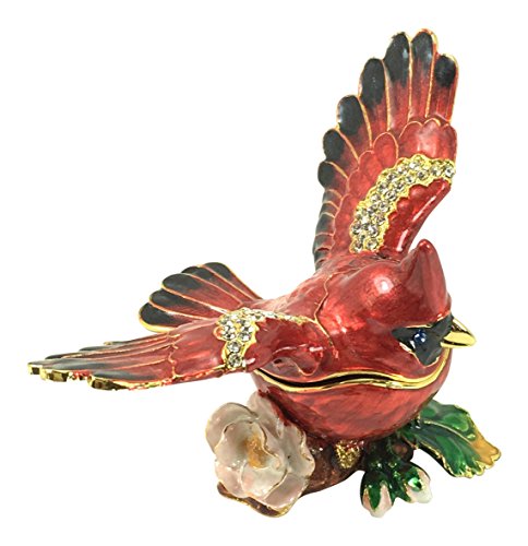 Bejeweled Cardinal Trinket Box by Kubla Craft, Accented with Crystals, 3.5L