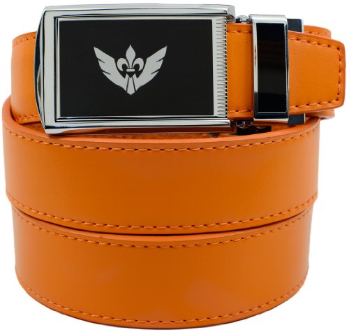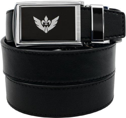 What is a SlideBelts brand ratchet belt? It's a leather belt that lets you freely adjust your belt size without the limitation of holes in the leather. In fact, there are no holes at all! A tab in the buckle catches on a row of notches sewn onto the underside of the leather, allowing for over 30 size options with 1/4" (6.35 mm) between adjustments. All SlideBelts come with a belt strap that can be trimmed to your exact waist size. The full length of one of our straps fits a 48" (122 cm) waist size. All buckles are completely removable and interchangeable with compatible SlideBelts products. Try SlideBelts out and see why there's no reason to poke holes in a perfectly good piece of leather.Feature