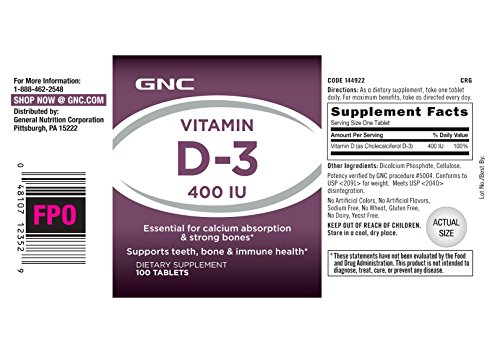 -. Title : GNC Vitamin D3 400 IU 100 Tablets