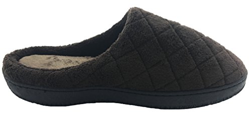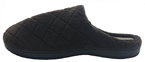 Finoceans Mens House Slippers Winter Nonslip Bedroom Brown Grid 10-10.5