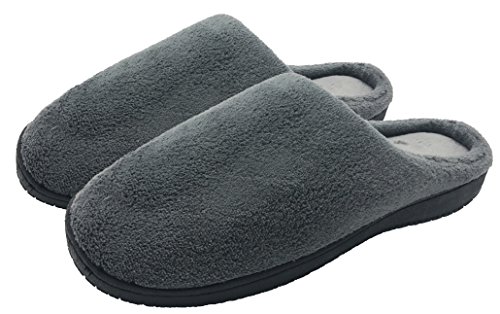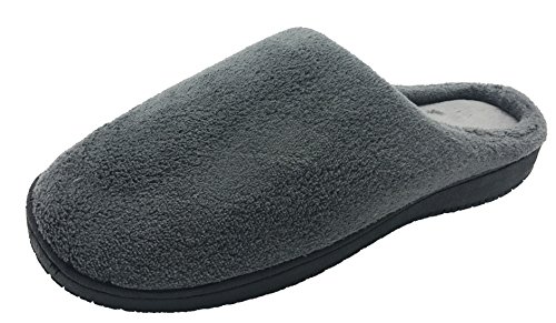 Finoceans Men's House Slippers Soft Coral Fleece Shoes Nonslip Bedroom Grey 11.5-12