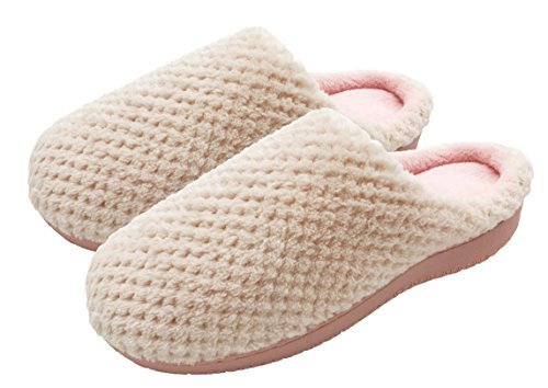 Finoceans Bedroom Slippers Womens Coral Fleece Memory Foam Shoes Pink 5-6.5