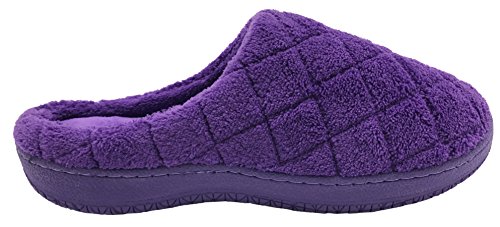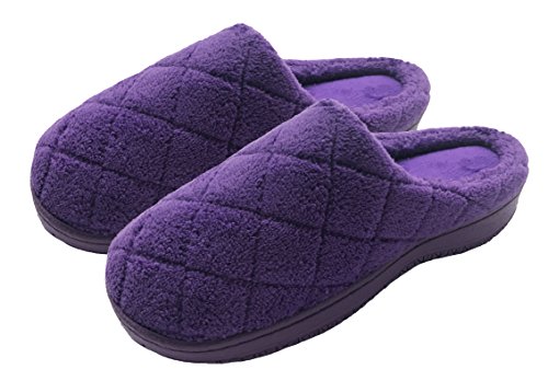 Finoceans House Slippers Women Memory Foam Shoes Indoor Home Purple Grid 5-6.5