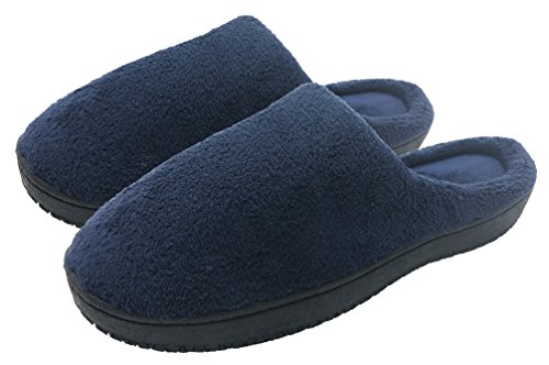 Finoceans House Slippers Memory Foam Shoes Winter Nonslip Bedroom Navy 10-10.5