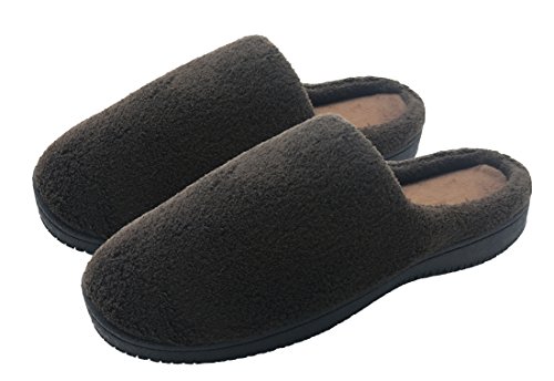 Finoceans Slippers for Men Soft Coral Fleece Memory Foam Shoes Footwear Brown 10-10.5