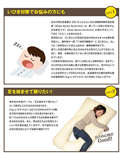 During CAUSE Hugging pillow sideways sleeping in sleep pillow rolling over the burden is less in the shoulder, neck also relieve the airflow stop snoring, it does not, it may take some burden on the neck fell the head from the pillow's pregnant woman of the sleep of the stomach to reduce the burden snoring prevent snoring prevention Goods sleep pillow sideways sleeping only pillow Hug-U body pillow is U-shaped pillow of big size made for those who sleep sideways. About 110㎝ length also two long legs characteristic that is, has been widely supported from adult men to pregnant women. The two legs there is a moderate thickness, which has been designed to fit the shoulder width of when it sideways. Or turning the arm also, it's perfect volume and size to or entangle the feet. ● sleep apnea syndrome potential number of patients in Japan for those who worries is said to be more than three million people in snoring measures, is breathing stops disease while you are asleep. Take the first letter of the Sleep Apnea Syndrome, it is also referred to as "SAS (SAS)". To relieve these symptoms even a little, relatively easy to airway, you want to use a sideways sleeping dedicated Hug U body pillow. ● gift for pregnant women! Painful to sleep in his back at the time of pregnancy, it will be to sleep sideways will need support of some kind of stomach. In that case, entangle the feet and hands, please Lying as hugging. By applying a cushion to support the leaning of the stomach, you can eliminate it in Negurushi is to secure the stomach. Also, since you can also use it as postpartum nursing cushion, you can expect he is for a long period of time. ● The laundry is also possible Hug-U body pillow with a cover comes with a removable cover. Because the cover is also available laundry in the wash, you can use with peace of mind for those who clean love. Cushion in also and asked to perform a reasonably sun, will come back is a soft feel and fluffy.