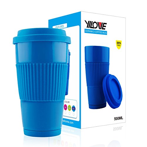 -. Brand : Yilove -. Feature : Made of reinforced ceramic, FDA Approved, BPA-Free and non-toxic. / With silicone lid, silicone sleeve and silicone coaster, not only beautiful, but also practical. / Dustproof, heat preservation, easy for grip and prevent scratching or burning table surface. / Can be safely used in dishwasher and microwave. / Dimension(lid included): 3.3*3.3*6.5 inch / Weight:1.1 lb /Capacity 17 oz. -. Label : Yilove -. Manufacturer : Yilove -. ProductGroup : Kitchen -. ProductTypeName : KITCHEN -. Publisher : Yilove -. Studio : Yilove -. Title : Yilove BPA-free Ceramic Travel Coffee Mug with Silicone Lid,17 oz