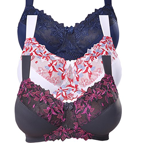 -. Feature : Plus size Minimizer bra gives incredible lift to enhance your figure / Pack of 3 NAVY, WHITE, GRAY with pretty lace embroidery detail on the front / Wire Free / No Underwire full support bra, adjustable shoulder straps, and comfortable mesh-lined cups / True sizes guaranteed. Microfiber fabric enriched with Spandex for the perfect fit / Available in sizes 34 - 48 B, C, D, DD, DDD. Hand wash only
