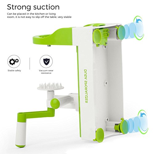 - 【EASY TO USE AND CLEAN】The unit keeps all of its attachments on board and is easy to setup, use and stores. The strong heavy-duty suction cup feet secure the unit to work surface to keep it steady at you slice.The unit keeps all of its attachments on board and is easy to setup, use and stores. The strong heavy-duty suction cup feet secure the unit to work surface to keep it steady at you slice.