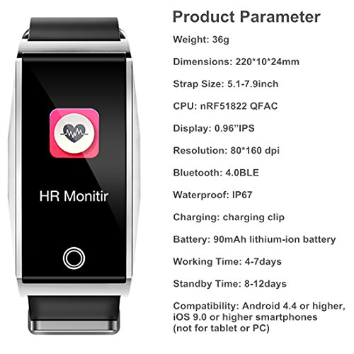 -. Title : Fitness Tracker HR, Activity Tracker 2018 Upgrade Smart Watch with Pedometer Blood Pressure Heart Rate SpO2 Monitor IP67 Waterproof Call SMS SNS Remind for Men Women Kids Android Iphone