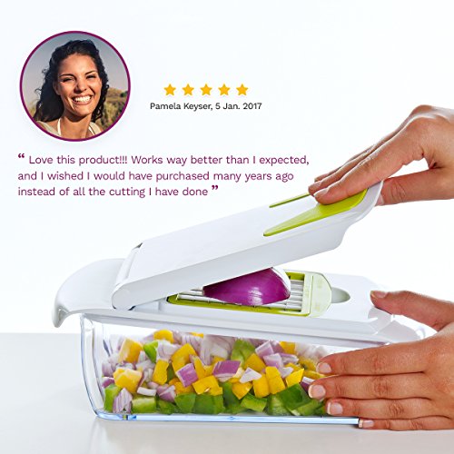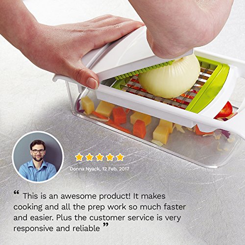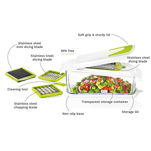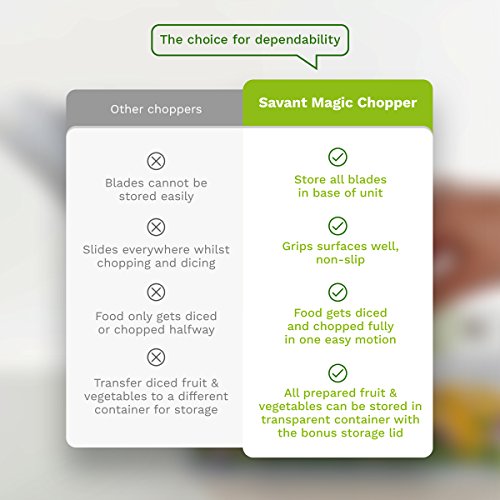 Magic Chopper - 4 Interchangeable Blades - Chop, Cut, Slice & Dice - Great for Fruit & Vegetables - Container with Storage Lid - Perpetual Peeler included and eBook