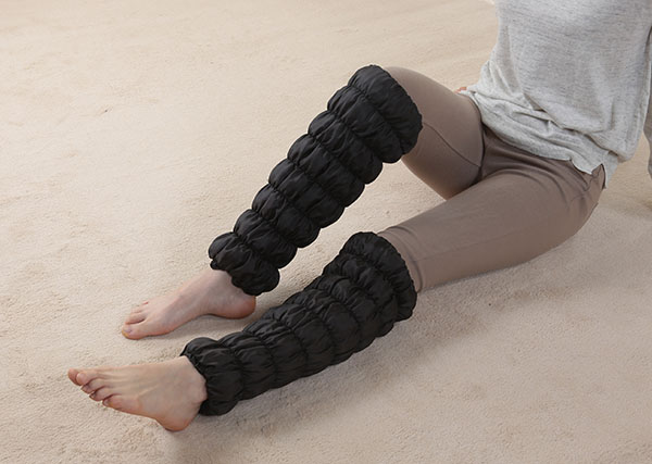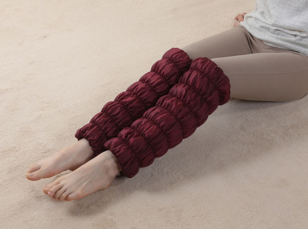 ●岩盤浴で使われている天然鉱石を練り込んだオーラ繊維が、足首からひざ下をじんわり心地よく温めます。