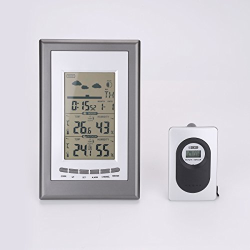 ★All- in -One Functions ----- weather forecast and air pressure display; atomic clock (ON or OFF optional); 7 time zone select; indoor/outdoor temperature, humidity and temperature alert; Max/Min display for air humidity and temperature; moon phase; date and weekend display; calendar; daily alarms; snooze function; Please find out more details in Product Description