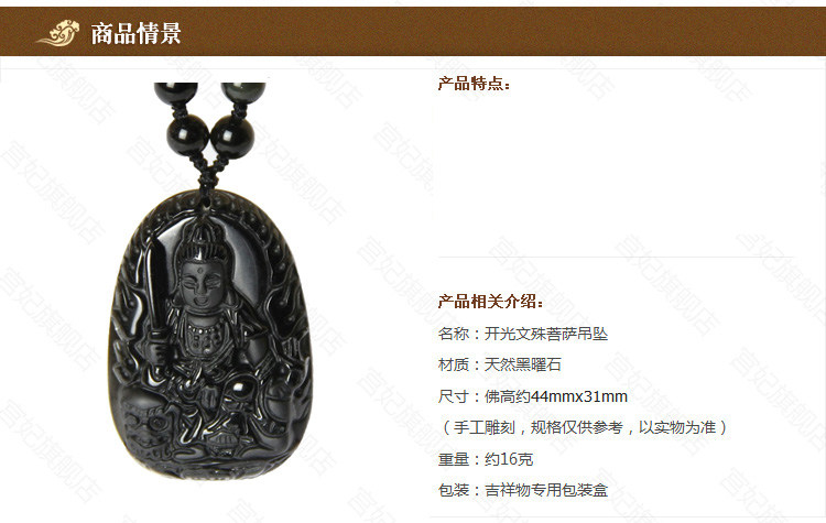 天然黑曜石吊坠 属兔本命佛吉祥物守护神文殊菩萨