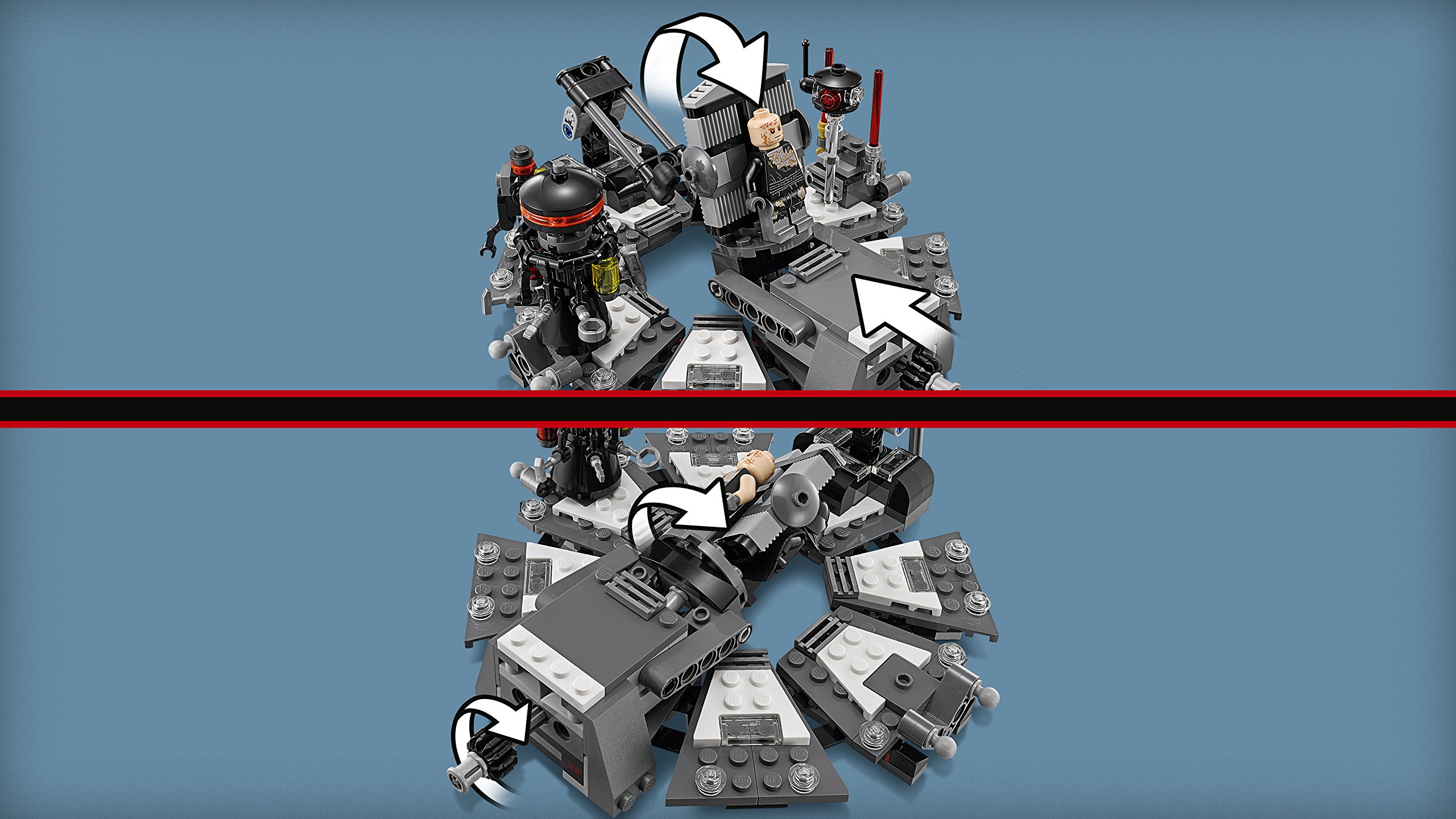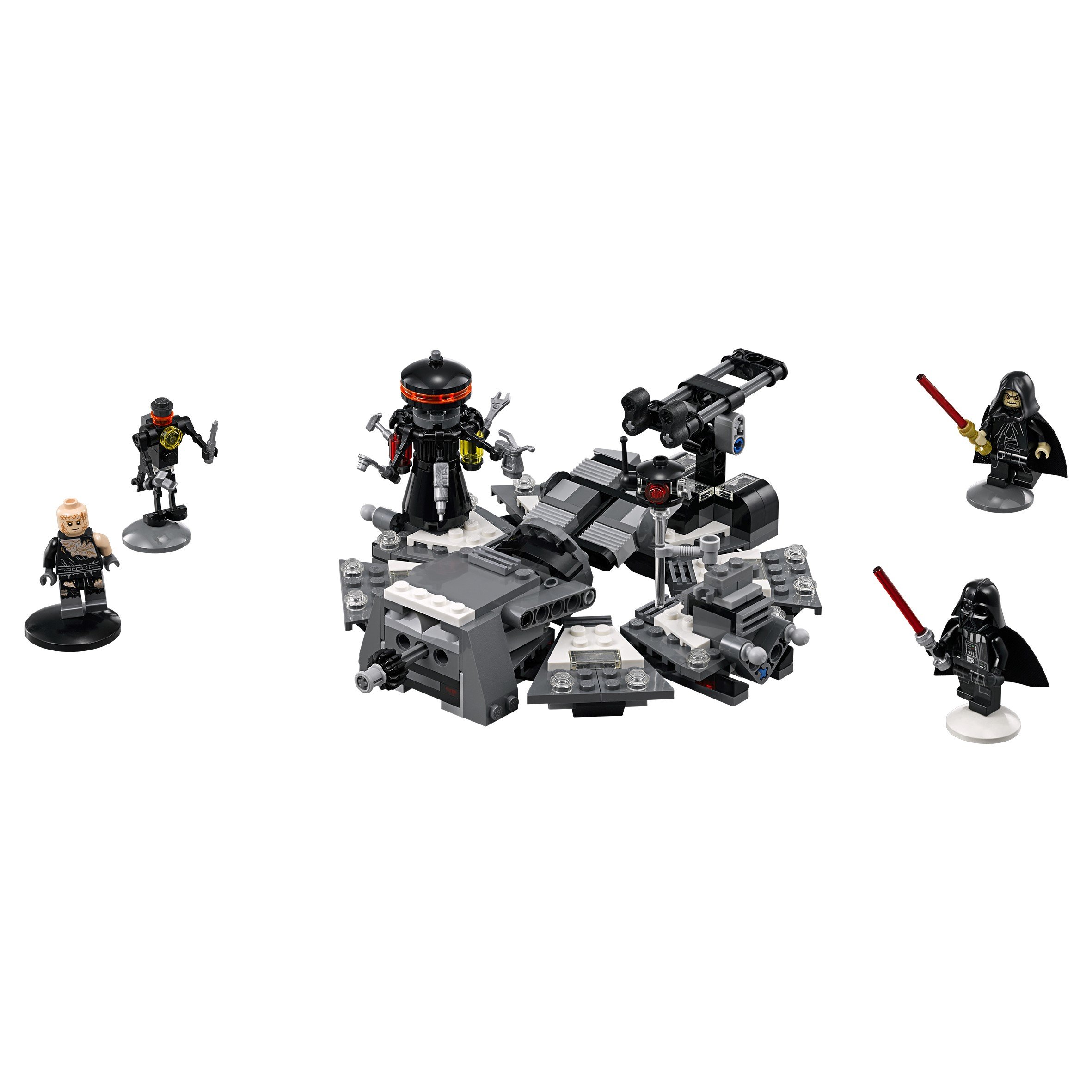 Before it's too late, let's go to help Palpatine's disciple Anakin! Lower the table, twist the handle, twist the helmet and raise the table again, the birth of the evil Sith Lord, Darth Vader! With the force of the Force
