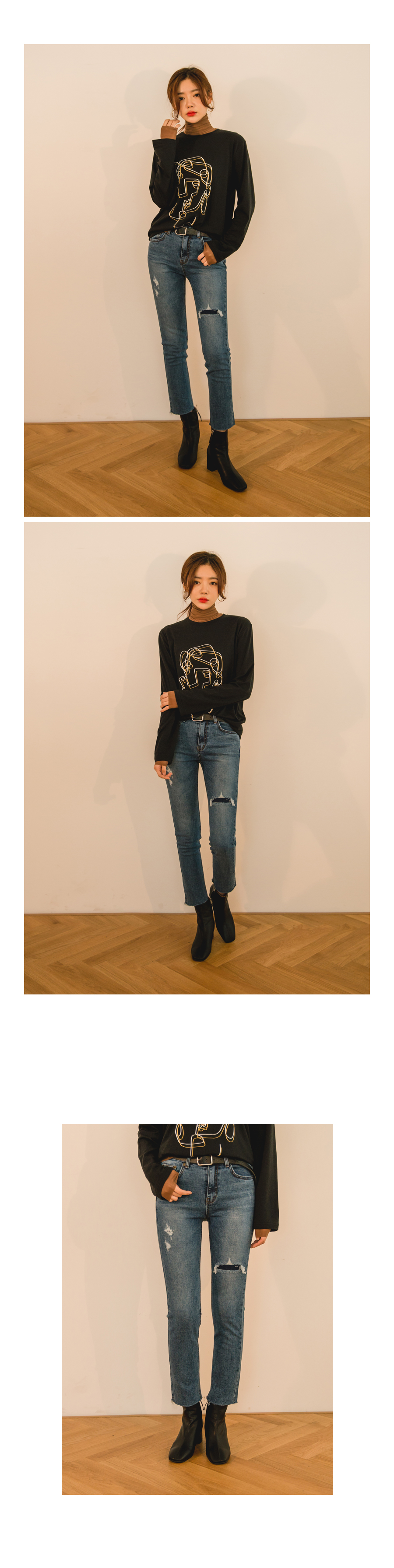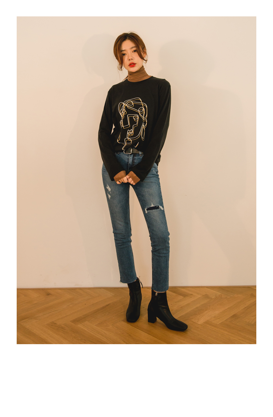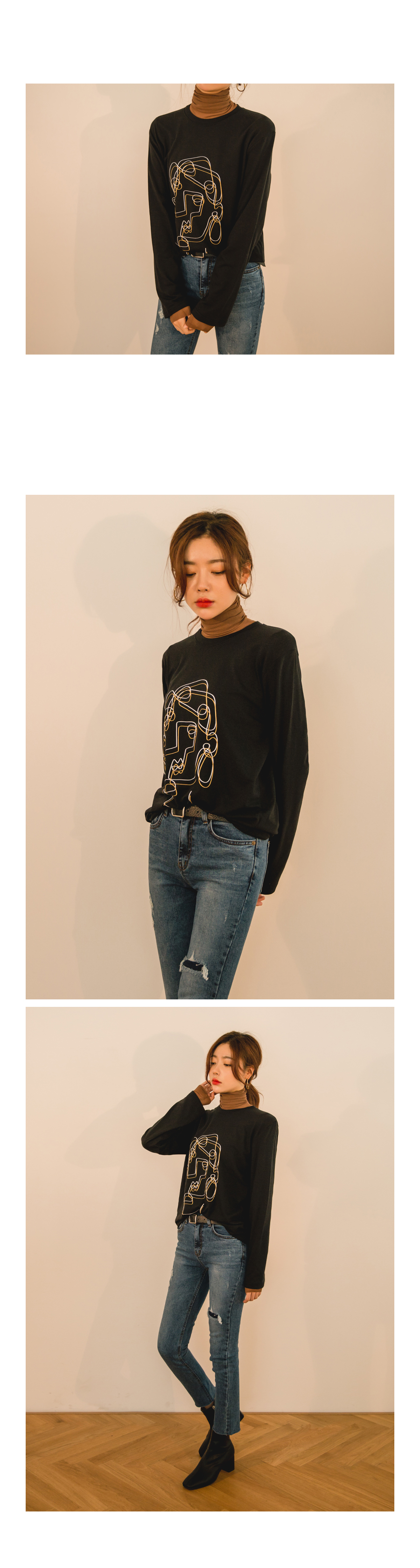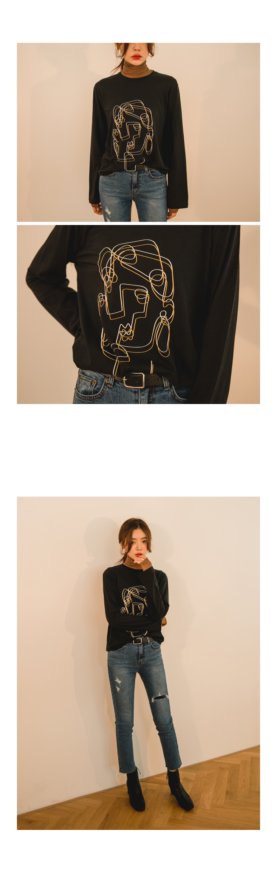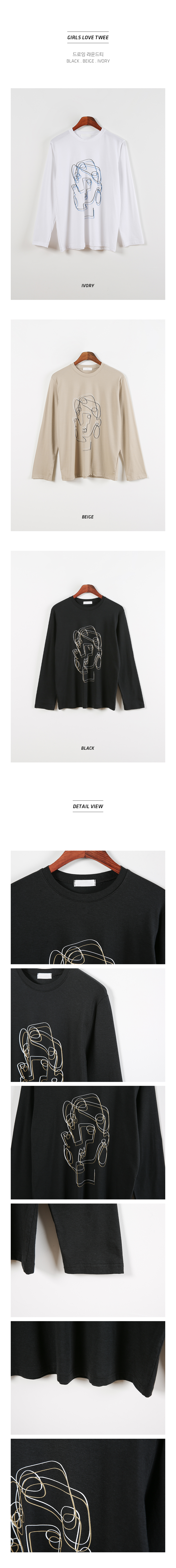 프론트 부분 드로잉 디자인이 독특한 티셔츠에요~