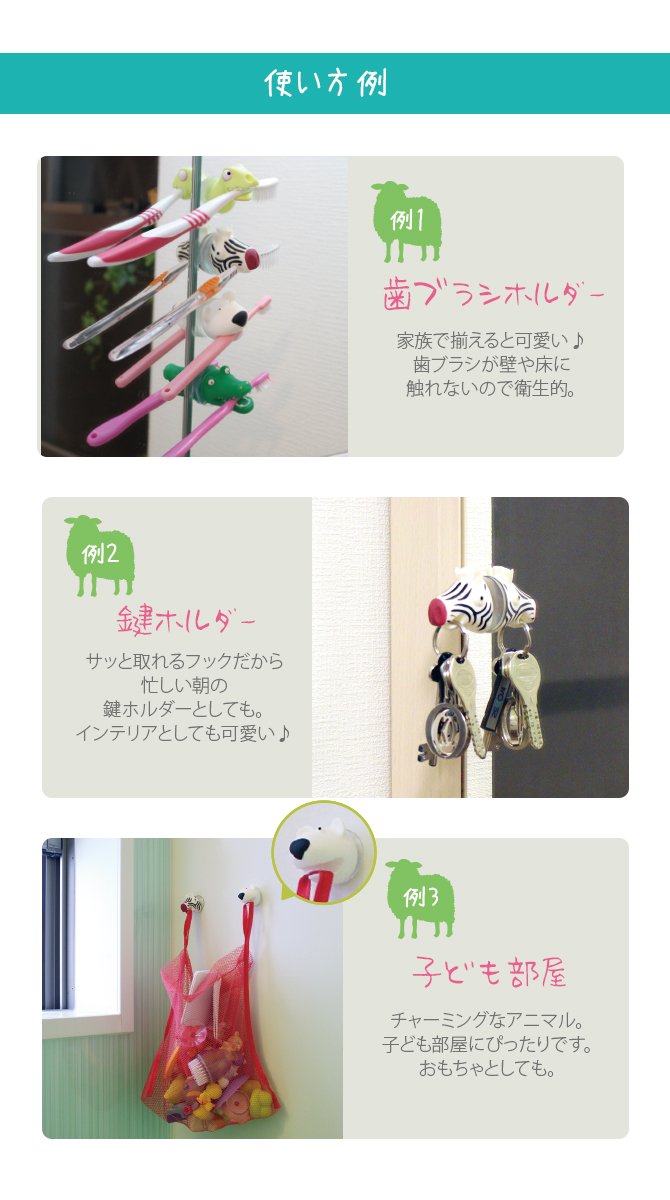 The room becomes bright with a cute set ☆ ※ Because the size and shape of the mouth are different depending on the animal, things may not be hooked or may not be attached.