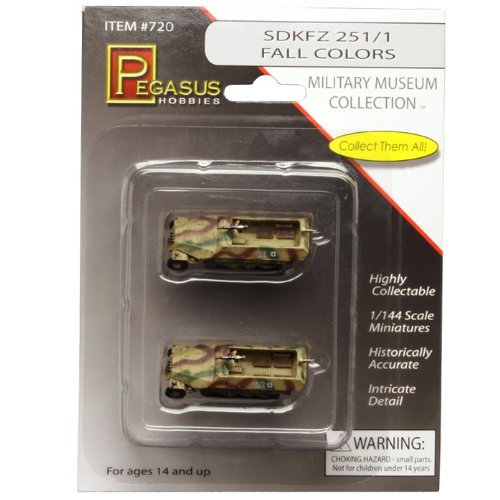 【モデルについて】 ドイツ軍兵士の足ともいえるSd.Kfz 251/1ハーフトラックを、塗装済み完成品に仕上げました。 1/144というミニスケールながら、形状やディテールの再現度はそれを感じさせない高精度。 さらに車体には細かな迷彩が施され、マーキング類はタンポ印刷で表現しています。 ペガサスホビーの同スケール完成品フィギュアとともに、手軽なディスプレイ/ジオラマ製作をお楽しみいただけます。 【主な特徴】 ■全長42mm ■Sd.Kfz 251/1の特徴を的確に捉えた塗装済み完成品 ■フォルム、ディテールなど、実車を忠実にスケールダウン ■車体はダークイエローをベースにダークブラウン、ダークグリーンの帯迷彩 ■リアル感を演出する上品なウェザリング ■各部に施されたマーキングなどはタンポ印刷で再現 ■パッケージは吊り下げブリスター形態