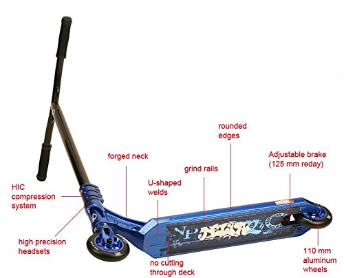 - Feature : NEW forged neck / NEW graphics on bottom, grip tape, bars and fork / NEW adjustable brake (125 mm ready) / NEW steel bar with gussets (standard size) / NEW threadless steel fork with Integrated Headset Compression (IHC)
