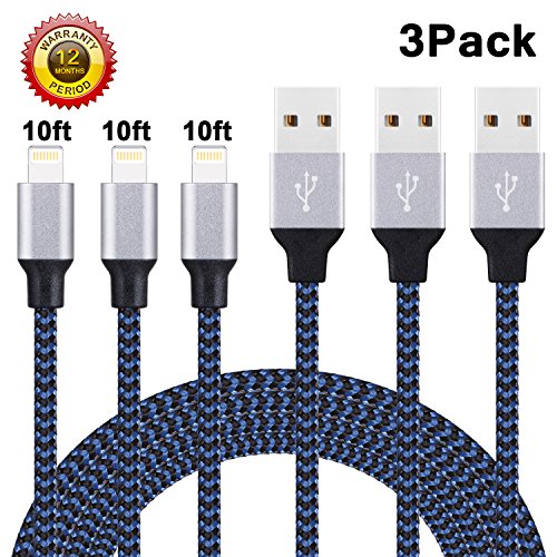 -. Title : iPhone Charger, Atill Lightning Cable 3Pack 10FT Nylon Braided iPhone 8Pin Lightning Charging & Sync Charger Cord for iPhone7 7Plus 6s 6sPlus 6 6Plus SE 5 5S 5C iPad iPod & More (BlackBlue)