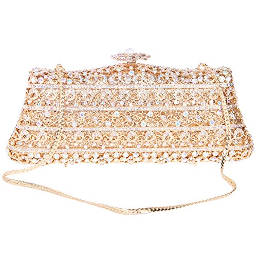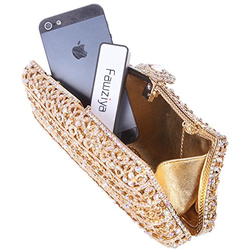 -. Feature : Diamonds:Fawziya use domestic grade A diamonds,12 cutting surface,a long-lasting gloss retention,one of leader in high class diamonds. / Hardware:Fawziya using K Gold plating process,each hardware is carefully selected,no scratches,no rust on the surface. / Fabrics:Fawziya use silk and satin,these materials are light,soft,colorful,shiny,noble and elegant. / The approximate size is 21(L)x5(W)x9.5(H)cm,Chain: 50cm short chain and 120 cm long chain removable. / Ideal for holding essentials like keys,mirror for touch-ups, lipstick and a iphone 6s.