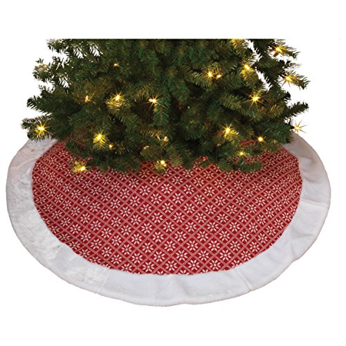 Gerson 48"d Knitted Snowflake Tree Skirt w/ Faux Fur Border