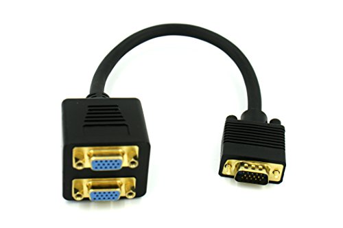 -. Title : 1VGA Male to 2 VGA Female High Resolution Video Y Splitter Plated Cable adapter a mirror image on 2 monitors for displays Duplicates the image from the video source to 2 displays,2 Moniters to 1PC