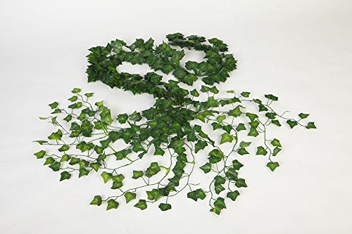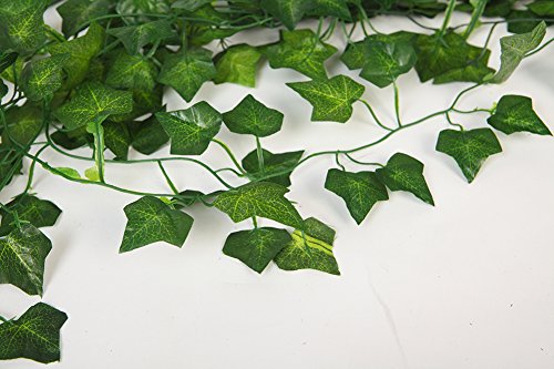 Each ivy hanging vine details approx length: 7 feet,80 leaves diameter approx 1" to 2 1/2" wide. Will arrive with 12pcs artificial hanging strands in the package