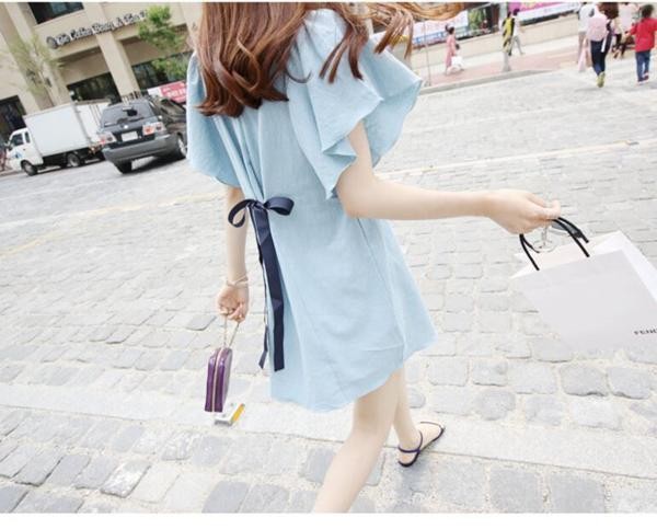 キュートバックりぼん コットン チュニックワンピース スカイブルー/XL