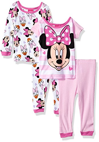 Disney Girls' Minne Mouse 4-Piece Cotton Pajama Set, Sugarpie Pink, 18M