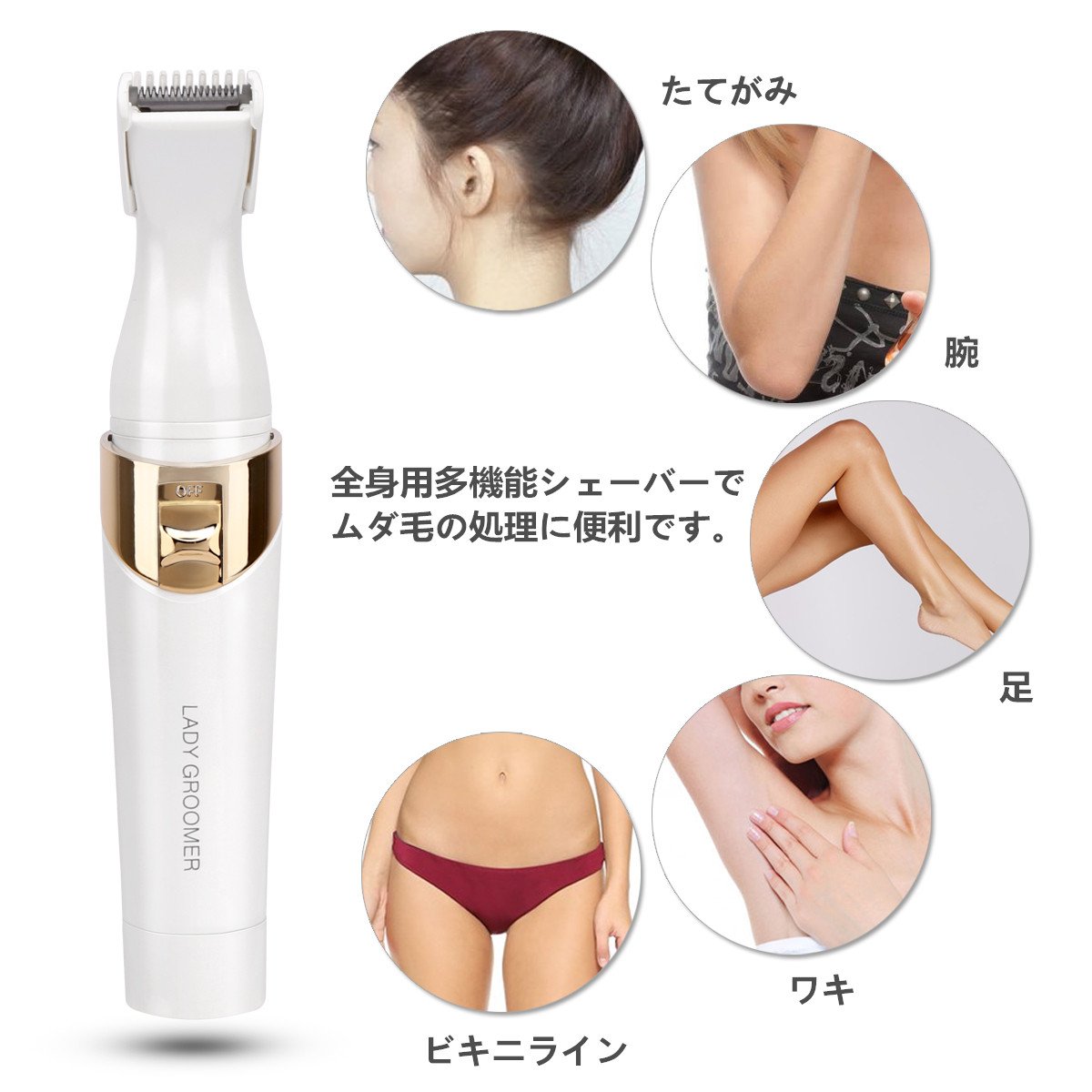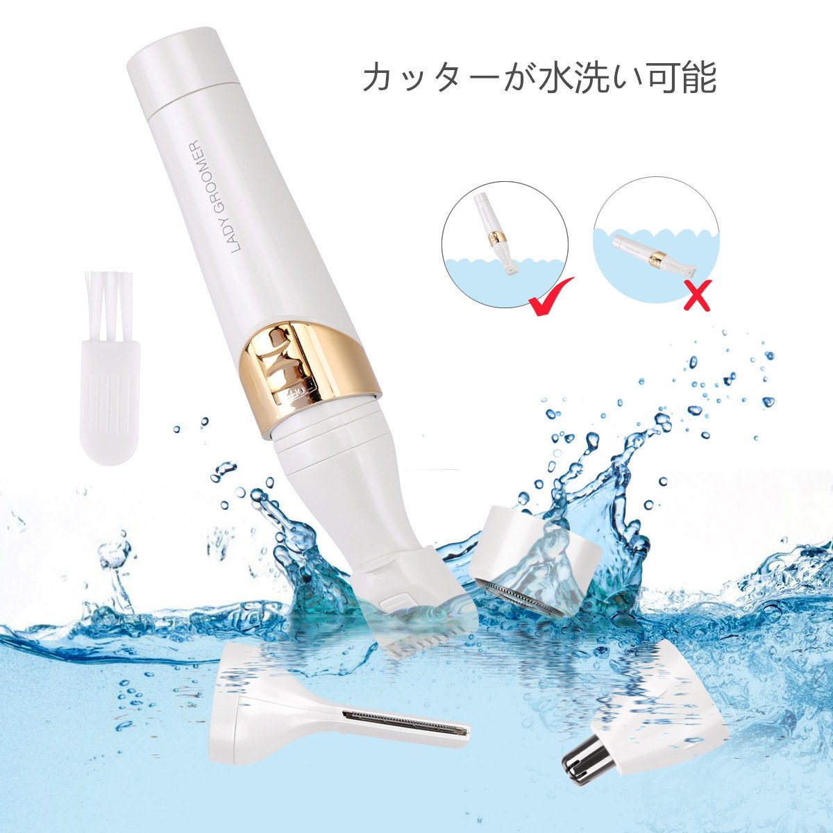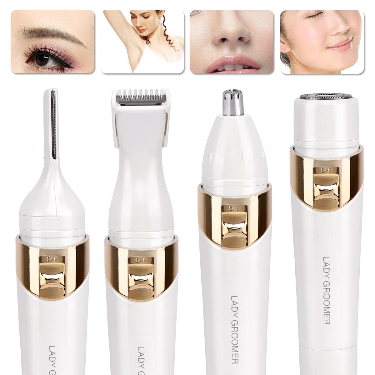 Nose hair trimmer, eyebrow cutter, shaver, epilator for whole body, battery powered electric nose hair cutter with four functions.