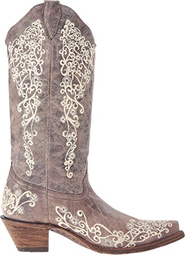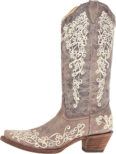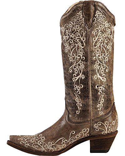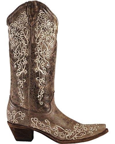 Binding : Shoes Product Description Bring vintage-inspired Western style to your feet with the versatile Corral® A1094 boots! Handcrafted uppers in a distressed leather. Floral embroidered detailing. Leather lining. Cushioned insole for all-day comfort. Snip toe. Leather outsole with rubber heel tab for long-lasting wear. Cowboy heel. Imported. Measurements: Heel Height: 1 3?4 in Weight: 1 lb 8 oz Circumference: 15 in Shaft: 14 in Product measurements were taken using size 9, width B - Medium. Please note that measurements may vary by size. 0