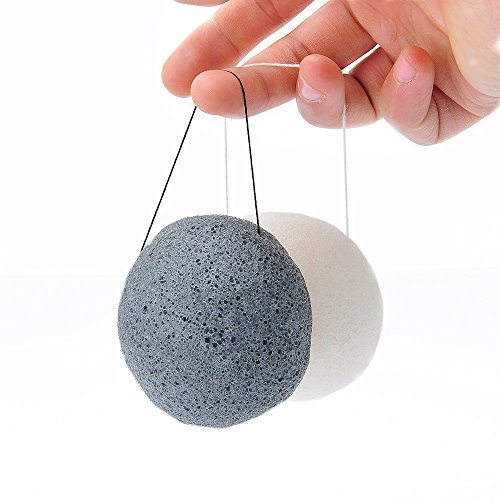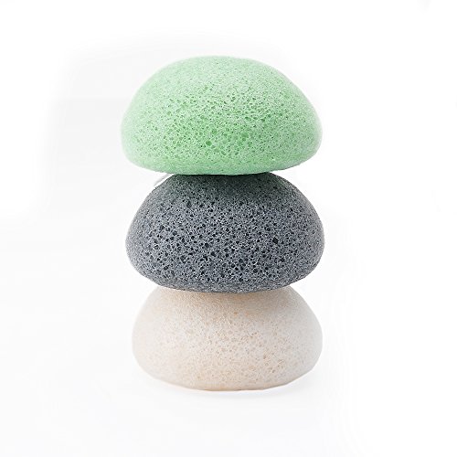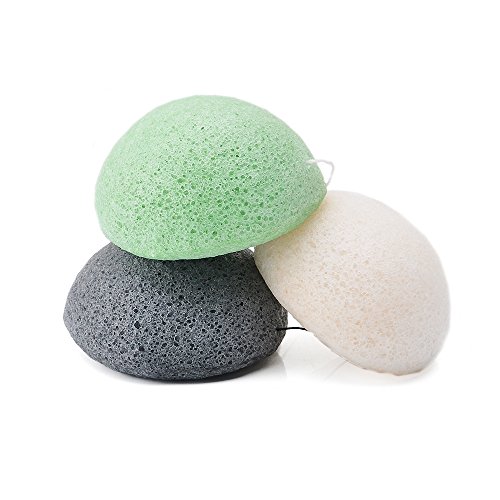 Natural Konjac facial sponge for deep clean and nurture of delicate facial skin. 3 pack included (Green+White+Black)