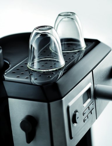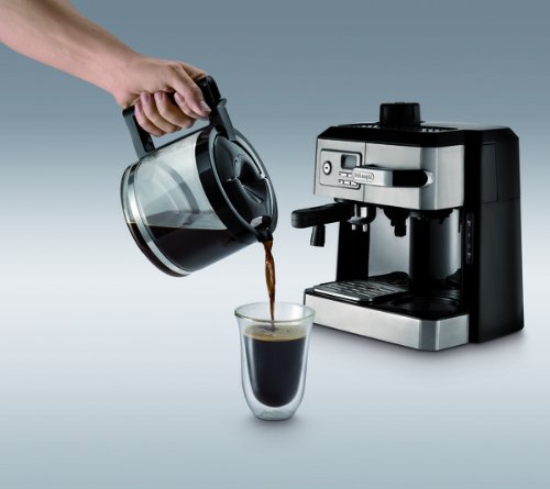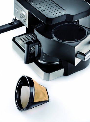 ALL-IN-ONE MACHINE can brew coffee and espresso simultaneously ENHANCE THE FLAVOR AND AROMA of your coffee with the patented Flavor Savor brewing system. This special function fully saturates and steeps coffee for a full, robust taste PREPARE AUTHENTIC CAPPUCCINOS and lattes with the swivel jet frother CONVENIENT PROGRAMMABLE DIGITAL TIMER NO MORE STALE COFFEE with the freshness indicator. LED lights illuminate every 15 minutes, for the first hour, to let you know how long the coffee has been standing CHOOSE THE STRENGTH of espresso and coffee with the flavor dial ADJUSTABLE STEAM EMISSION for espresso or cappuccino DURABLE AND LONG-LASTING permanent gold-tone filter DRIP INTERRUPT 10-CUP CARAFE CAPACITY EASY TO FILL with removable water tank ELIMINATE IMPURITIES for the best tasting coffee with water filtrationFeature