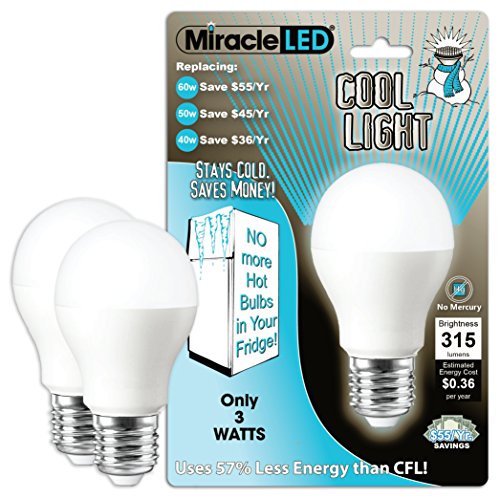Miracle LED 604724 3-watt Refrigerator and Freezer Light, Long Life Energy Saver Bulb, Cool White, 2-Pack