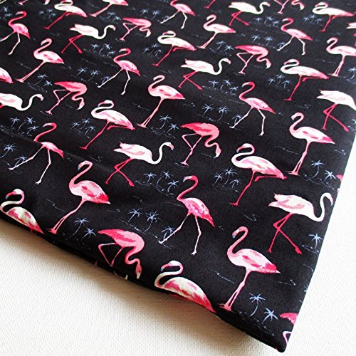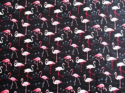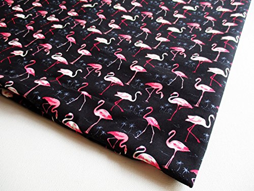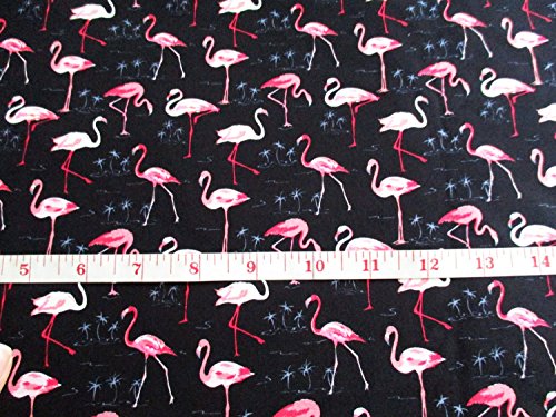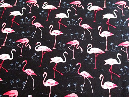 Pink Flamingo in the lake at night Forest Bird on Black 36 by 36-Inch Wide (1 Yard) (CT622)