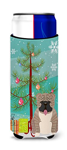Caroline's Treasures BB4251MUK Merry Christmas Tree English Bulldog Grey Brindle Michelob Ultra Hugger for Slim Cans, Multicolor