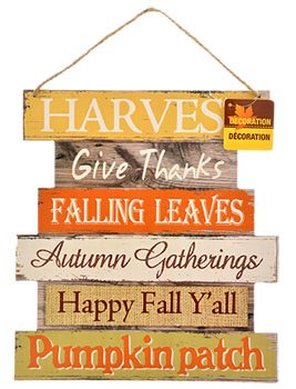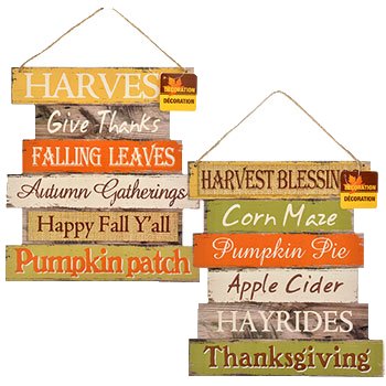 Fall Harvest Set of 2 Wooden Hanging Sign Decoration