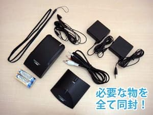???使用に必要なイヤフォン、AVケーブル、ACアダプター2つ、単三電池2つ、ネックストラップはすべて付属しているので、購入いただいたらすぐに使えます。