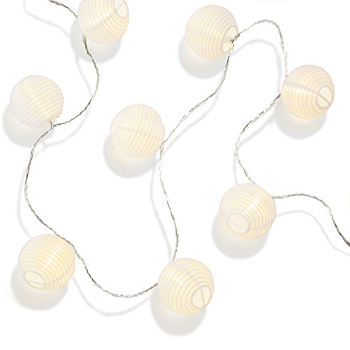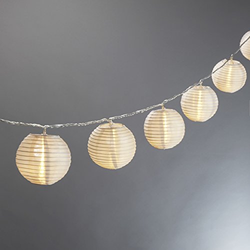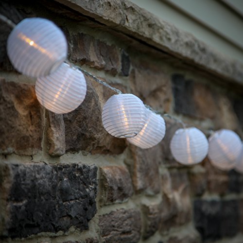 White Lantern LED String Light, 13.5 Foot, 10 Mini Lanterns, 1 Plugin Strand, Water Resistant, Indoor/Outdoor Use, Connectable, Expandable to 100 Lights - UL Listed