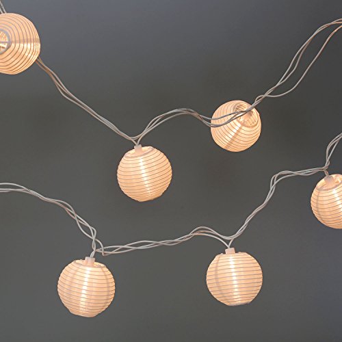 Description: These durable lantern style plug-in party lights each come with ten 3" white nylon lanterns with 1 warm white LED on each. They are the perfect decorating choice for indoor and outdoor events or for adding some extra charm to your everyday home decor.