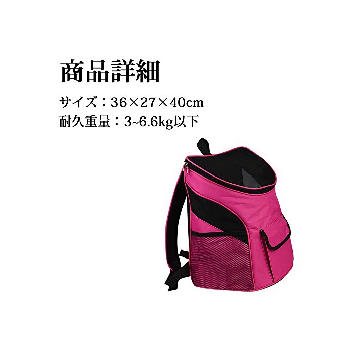 원본상품명:Ladyclare 犬 猫用 ペットバッグ ペットキャリ? リュック キャリ?バッグ 小中型犬 サイズM:36×27×40cm 耐久重量:3~6.6kg以下カラ?:ピンク